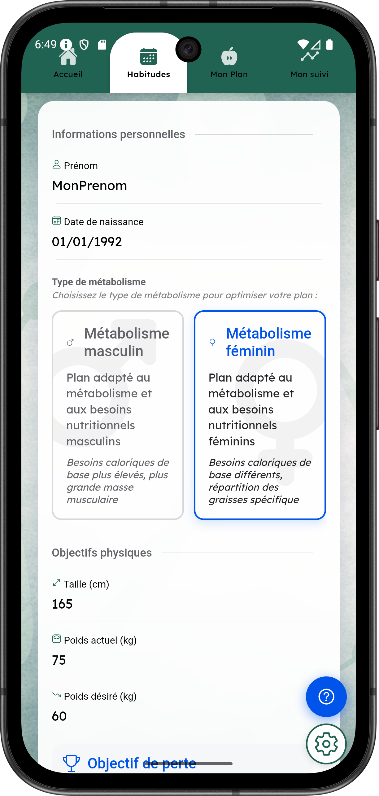 C’est d’abord, en fonction du sexe, de l’âge, de l’activité, de la taille et du poids, de connaître les habitudes alimentaires de la personne pour pouvoir, à partir de là, lui proposer un plan alimentaire adapté à sa situation personnelle.